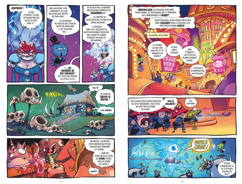 Vivre au pays des merveilles a toujours été le rêve de la petite Gertrude... Et c'est malheureusement ce qui va lui arriver ! Ne vous fiez pas aux couleurs acidulées et aux grands regards candides de tous ces charmants personnages, I Hate Fairyland n'est pas un conte pour enfants. Skottie Young (Le Magicien d'Oz), auteur complet de cette sanglante balade au bout de la mignonceté, crée avec le personnage de Gertrude un puissant antidote à tous ceux que la magie Disney a fini par épuiser. Place à la violence explicite et aux insultes pâtissières ! Qu'advienne le règne de Gert la Destructrice !