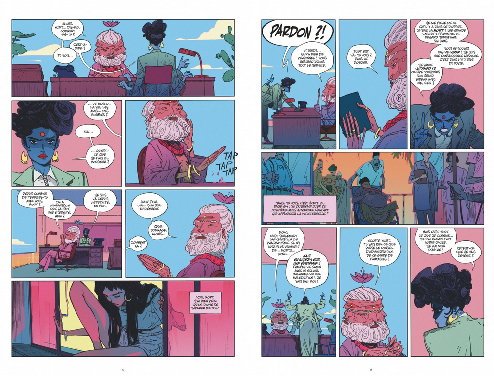 Mumbai, de nos jours. Mme Shah, en plein travail et coincée dans un embouteillage, hurle sur son mari au téléphone. Laila Starr, une jeune femme déjà fatiguée de tout, est allongée sur le rebord d'une fenêtre ouverte, plusieurs étages au-dessus du trafic. Et plus haut encore, bien au-delà des nuages, la déesse de la Mort est convoquée dans le bureau de son patron. Ces trois destins se rejoignent au moment où, simultanément Laila saute dans le vide, Mme Shah donne naissance à son fils Darius, et la Mort est renvoyée sans ménagement. Dans un futur, Darius est en effet celui qui découvrira le secret de l'immortalité et reléguera la Mort au rang de désagréable souvenir. Mais la Mort, incarnée dans le corps sans vie de Laila, compte bien retrouver sa place, même si elle doit pour cela éliminer le jeune Darius. Du moins, c'était le plan avant qu'un camion ne la fauche et qu'elle ne se retrouve à nouveau ressuscitée quelques années plus tard...