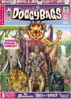 Plus brutal qu'un coup de fusil à pompe en pleine tête et plus vicieux qu'un arrachage de dent à la pince-monseigneur, DoggyBags est un hommage aux pulps et aux comics d'horreur des années 50 qui ne fait pas dans la dentelle : les chromes rugissent, les calibres crachent et l'hémoglobine coule à flots dans la joie et la mauvaise humeur. Sortez vos p'tits sacs pour toutous, parce qu'il va y avoir de la viande en rab ! Un Volume 3 spécial Mexique, avec au sommaire : "Room 213" par Run et Neyef ; "La danza de los 13 velos" par Florent Maudoux ; "Día de muertos" par Francesco Giugiaro et Jérémie Gasparutto. Au sommaire du Volume 4 : "Sélection" d'ElDiablo et Nicolab ; "Lady in White" de Run ; "Geronimo" de Run et Guillaume Singelin Inclus : 2 posters !