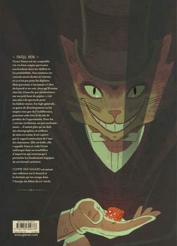 Le hasard est bien plus qu'une simple probabilité. Paris, 1909. Victor Nimas est un comptable à la vie bien rangée qui trouve son bonheur dans les chiffres et les probabilités. Son existence ne connaît ni drame ni remous et ce n'est pas pour lui déplaire. Mais personne n'est jamais à l'abri du hasard et un soir, alors qu'il rentre chez lui, il marche par inadvertance sur un petit bout de papier : c'est une place de spectacle pour les ballets russes. En règle générale, ce genre de divertissement ne lui inspire rien que de l'indifférence, pourtant cette fois, il décide de profiter de l'opportunité. Pour lui, c'est une révélation, un pur enchantement... d'autant plus qu'au-delà des chorégraphies et artifices de mises en scène, il est captivé par le regard ensorcelant de l'une des danseuses. Elle est belle, elle s'appelle Tania et voilà Victor embarqué dans un tourbillon d'imprévus qui iront jusqu'à perturber les fondements logiques de cet éternel cartésien. Ouvre riche aux multiples niveaux de lectures, Comme par hasard est autant une réflexion sur le hasard et la destinée qu'un voyage dans l'Europe du début du XXe siècle. Une histoire d'amour sensible et complexe, illustrée et racontée par le brio auquel Cyril Bonin nous a accoutumés.