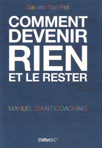 Il y a des régions du monde où les gens ne savent même pas qu'ils ont des problèmes. Chez nous, non seulement nous en avons identifié un bon nombre - mais en plus nous savons comment les traiter. Quelle chance ! Comment ? avec l'aide des coaches. Les coaches sont des gens charmants, qui ont été formés dans des écoles de coaching, par des coaches, qui ont été formés dans des écoles de coaching par des coaches. Facile, non ? A l'aide de conseils généralement simples comme bonjour mais habilement enrobés dans un discours mi-maternant mi-psychologisant, les coaches nous montrent comment nous débarrasser de nos problèmes grâce à des modes d'emploi, qui nous permettent, bon-an mal-an, de nous glisser avec douceur sur la voie d'une existence à la fois plus douillette et plus riche. Salomé Van Pelt pense, elle, que cette course à l'excellence de vie est une énorme foutaise dont elle va essayer de vous débarrasser. Devenir rien (et le rester) lui paraît être un projet bien plus intéressant et ambitieux que devenir heureux, gentil, ou non-fumeur... Voilà pourquoi vous ne pourrez qu'être séduit par ses conseils autrement plus judicieux que ceux de ces neuneus de coaches...