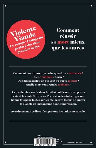 Comment mourir avec panache quand on a raté sa vie ? Quelle méthode choisir ? Que dire à quelqu'un qui veut ou qui va mourir ? Quelle mort vous rendra meilleur ? La pandémie a remis dans le débat public notre rapport à la vie et la mort. Ce livre est l'occasion de s'interroger une bonne fois pour toutes sur les meilleures façons de quitter la planète en laissant une bonne impression. Avertissement : ce livre n'est pas une incitation au suicide.