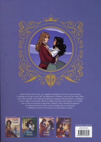 Un tome 5 inédit jamais paru en roman ! Après le décès de la reine, les complots redoublent à la Cour, surtout depuis le mariage secret du roi avec Mme de Maintenon. D'ailleurs, son école de jeunes filles, où Cécile travaille, est la cible de nombreuses attaques. Heureusement, Guillaume et Joao veillent à sa sécurité. Mais les vieilles rancoeurs sont tenaces, et il semble que Cécile soit devenue la personne à abattre. Aussi, lorsqu'elle disparaît du château de Noisy-le-Roi, tout le monde part à sa recherche. Guillaume arrivera-t-il à retrouver sa bien-aimée à temps ?