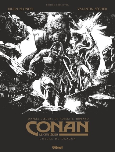 Un monde à parcourir. Un trône à reconquérir. Sous les voûtes funèbres du mausolée de l'antique et cruel Empereur Xaltotun de Python, trois hommes dévorés par l'ambition sont venus chercher la clé de leur pouvoir. Ils viennent offrir au corps inerte de l'ancien empereur le coeur d'Ahriman, source d'immortalité qui lui appartenait jadis et ne lui fut retiré qu'au prix de sa vie. En échange de cette offrande les trois hommes ne réclament qu'une chose de l'ancien empereur : le monde. Or, il n'existe qu'un seul être capable de leur barrer la route, un cimmérien s'étant emparé du trône d'Aquilonie : Conan. Au creux de la plaine de Valkia, les armées de Conan et de Xaltotun vont s'affronter. Menés par leur chef, les soldats du cimmérien croiront jusqu'au bout à leur victoire avant de faillir devant la puissance des incantations de Xaltotun. Dans sa chute, Conan entendra les cris de ses frères d'armes avant de reprendre ses esprits dans les geôles de l'ennemi... Mais même tombé aussi bas, même témoin de l'incommensurable force de l'ennemi, Conan se relèvera... Unique roman Conan de la bibliographie de Robert E. Howard, L'Heure du dragon est aujourd'hui adapté en BD par deux pontes de l'heroic fantasy : Julien Blondel et Valentin Sécher. Au fil des planches virtuoses d'un album chargé du souffle de la légende, les deux auteurs reconstituent une aventure grandiose, épique et sanguinaire.