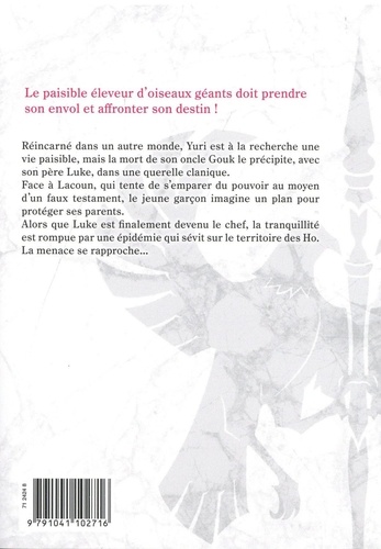 Face à la guerre qui approche, le paisible éleveur d'oiseaux géants doit prendre son envol et affronter son destin ! Réincarné dans un autre monde, Yuri est à la recherche une vie paisible, mais la mort de son oncle Gouk le précipite, avec son père Luke, dans une querelle clanique. Face à Lacoun, qui tente de s'emparer du pouvoir au moyen d'un faux testament, le jeune garçon imagine un plan pour protéger ses parents. Alors que Luke est finalement devenu le chef, la tranquillité est rompue par une épidémie qui sévit sur le territoire des Ho. La menace se rapproche...