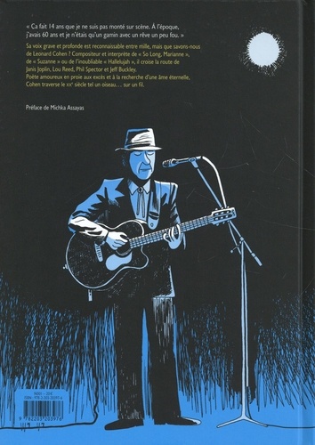 Véritable légende dans son pays, le Canadien Leonard Cohen (1934-2016) a marqué la musique du XXe siècle par la beauté de ses compositions. On reconnaît Cohen à son timbre chaud et à la douceur mélancolique de ses chansons, souvent écrites en hommage aux femmes qu'il a aimées : Suzanne, Marianne, d'autres encore... Dans cette biographie, le lecteur traverse par flash-backs la vie d'un artiste remarquable, avec ses coups de génie (le morceau "Hallelujah", dont les reprises ont parfois éclipsé l'original) et ses coups du sort (la perte des droits de "Suzanne", les manoeuvres d'agents indélicats...), croisant au passage Janis Joplin, Lou Reed ou Phil Spector...
