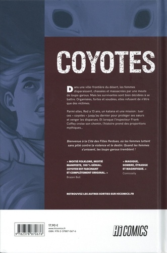 Dans une ville-frontière du désert, les femmes disparaissent, chassées et massacrées par une meute de loups garous... qui ne sont autres que les hommes de la ville. Les survivantes sont bien décidées à se battre. Organisées, fortes et soudées, elles refusent de n'être que des victimes. Parmi elles, Red a 13 ans, un katana et une mission : tuer ces " coyotes " jusqu'au dernier pour protéger ses soeurs et venger les disparues. Et lorsque l'officier Frank Coffey croise son chemin, l'histoire prend des proportions mythiques... Bienvenue à la Cité des Filles Perdues, on les femmes luttent sans pitié contre la violence et le destin. Quand les femmes s'unissent les loups-garous tremblent !