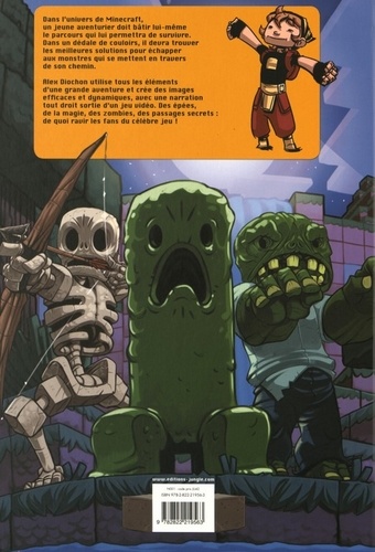 Dans l'univers de Minecraft, un jeune aventurier doit bâtir lui-même le parcours qui lui permettra de survivre. Dans un dédale de couloirs, il devra trouver les meilleures solutions pour échapper aux monstres qui se mettent en travers de son chemin. Alex Diochon utilise tous les éléments d'une grande aventure et crée des images efficaces et dynamiques, avec une narration tout droit sortie d'un jeu vidéo. Des épées, de la magie, des zombies, des passages secrets : de quoi ravir les fans du célèbre jeu !