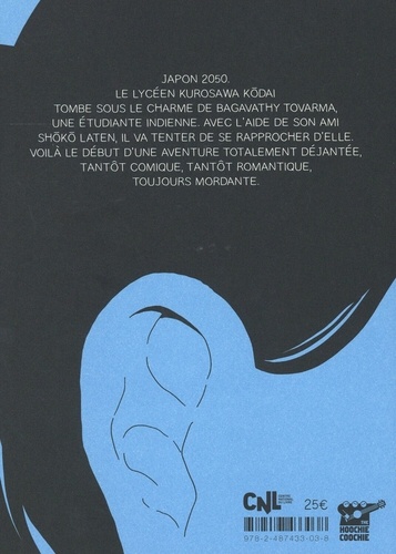 En 2050, le Japon a perdu 25 millions d'habitants et n'en compte plus que 100 millions du fait de l'impact du déclin démographique. Depuis une décennie, le pays s'est engagé dans une politique favorable à l'immigration et relance son économie grâce à ce repeuplement. Néanmoins, la population immigrée n'est pas toujours bien accueillie par une partie du peuple japonais. La montée des extrêmes se fait ressentir dans le pays et divise les classes populaires qui ressentent une forme de déclassement. Bagavathy Tovarma vient d'être transférée dans un lycée de l'ouest du Japon. Kodai Kurosawa, le président du club de technologie, tombe sous le charme de cette étudiante indienne. Avec l'aide de son ami Shoko Laten, Kurosawa essaie de se rapprocher d'elle. Mais ils vont vite se rendre compte du sort quotidien subi par Bagavathy. Tour à tour récit d'anticipation, d'apprentissage, pure comédie, farce politique, romance, ne négligeant jamais une savoureuse part d'action, Croissant amoureux est forgé dans le meilleur moule des oeuvres populaires de qualité.