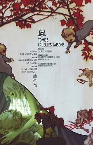 La bataille de Fableville a permis aux Fables de continuer à exister ou milieu des Communs, mois lés résultats des élections apportent leur lot de bouleversements dans les affaires de la communauté. Alors que l'on découvre le passé de Bigby Wolf, l'accouchement de Blanche Neige et la naissance de sa progéniture réservent bien des surprises... Le mystérieux tueur qui sévit parmi les Fables peut-il mettre en danger cette nouvelle famille ? FABLES est une série née de l'imagination prolifique de Bill WILLINGHAM et de son amour pour les contes de fées. Plus proche d'ANDERSEN et des frères GRIMM que de Walt DISNEY, l'auteur, assisté au dessin par Tony AKINS et Mark BUCKINGHAM, développe une version inédite, documentée et parfaitement... vraisemblable des héros, créatures fabuleuses et monstres qui ont peuplé notre enfance. Récompensé à plusieurs reprises par l'Eisner Award du Meilleur Illustrateur de Couverture, James JEAN participe également à la réécriture de ces fables immortelles.