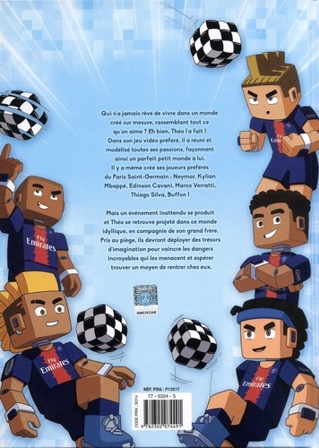 Quand le phénomène Minecraft s'invite dans le plus grand club de football ! Qui n'a jamais rêvé de vivre dans un monde créé sur mesure, rassemblant tout ce qu'on aime ? Eh bien, Théo l'a fait ! Dans son jeu vidéo préféré, il a réuni et modélisé toutes ses passions, façonnant ainsi un parfait petit monde à lui. Il y a même créé ses joueurs préférés du Paris Saint-Germain : Neymar, Mbappé, Cavani ! Mais un événement inattendu se produit et Théo se retrouve projeté dans ce monde idyllique, en compagnie de son grand frère. Pris au piège, ils devront déployer des trésors d'imagination pour vaincre les dangers incroyables qui les menacent et espérer trouver un moyen de rentrer chez eux indemnes.