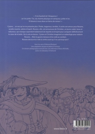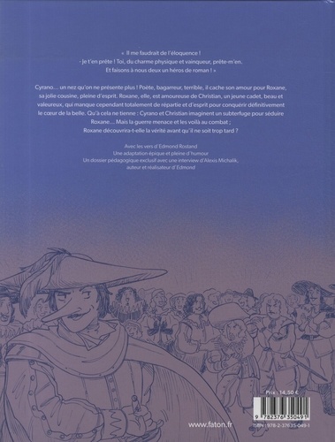 "Il me faudrait de l'éloquence ! " "Je t'en prête ! Toi, du charme physique et vainqueur, prête-m'en. Et faisons à nous deux un héros de roman ! " Cyrano... un nez qu'on ne présente plus ! Poète, bagarreur, terrible, il cache son amour pour Roxane, sa jolie cousine, pleine d'esprit. Roxane, elle, est amoureuse de Christian, un jeune cadet, beau et valeureux, qui manque cependant totalement de répartie et d'esprit pour conquérir définitivement le coeur de la belle. Qu'à cela ne tienne : Cyrano et Christian imaginent un subterfuge pour séduire Roxane... Mais la guerre menace et les voilà au combat ; Roxane découvrira-t-elle la vérité avant qu'il ne soit trop tard ?
