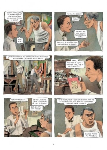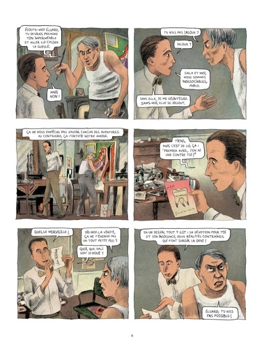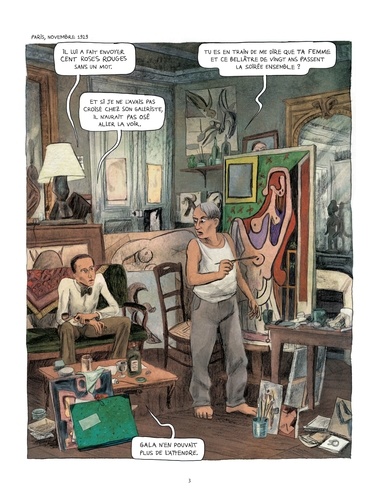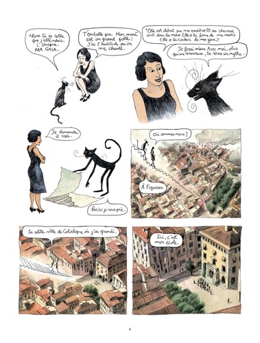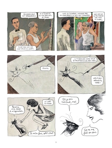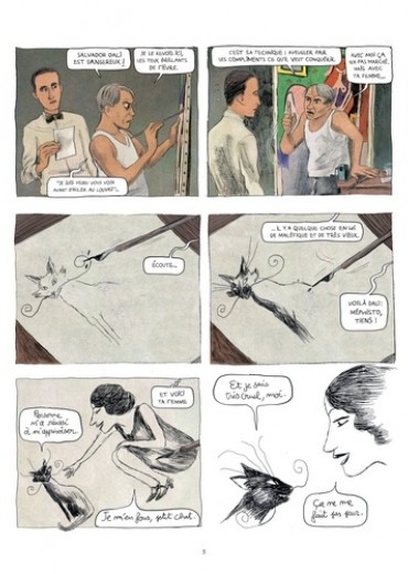 Nous sommes en 1930 dans l'atelier de Picasso de la rue de la Boétie. Arrive Eluard, radieux. Dali dîne enfin avec sa femme, Gala. "Eluard n'est pas jaloux ?? Non". , répond le poète. Picasso est sidéré et met en garde son ami : pour lui, Salvador Dali, du haut de ses 25 ans, est un drôle de coco, vieux et jeune à la fois, un peintre au talent sidérant, à l'intelligence vrombissante, prêt à tout... Et Picasso de croquer Dali en chat Mephisto, un chat qui prend vie, se frotte aux jambes d'une Gala qui se baisse et le caresse, et le chat aussitôt de l'emmener avec lui dans son passé, sa jeunesse, et pour commencer à Figueras, ville de Catalogne.