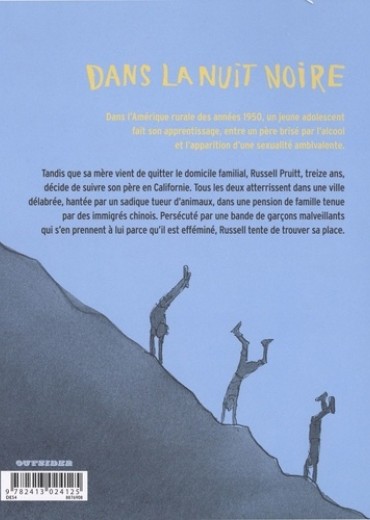 Un roman graphique de David Smalls, l'auteur de Sutures, qui dresse avec virtuosité le portrait brutal d'une adolescence masculine qui a mal tourné. Dans les années 50, Russel Pruitt, 13 ans, décide de suivre son père alcoolique en Californie après avoir été abandonné par sa mère. Obligé de se débrouiller seul dans Marshfield, une ville délabrée et hantée par un sadique tueur d'animaux, persécuté par une bande de garçons malveillants qui s'en prennent à lui parce qu'il est " pédé ", Russel lutte pour survivre.