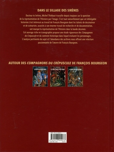 Retrouvez dans cette nouvelle édition la passionnante étude d'un historien confronté à la masse et à la diversité de la documentation rassemblée par François Bourgeon pour la création des Compagnons du crépuscule. L'art de François Bourgeon est exceptionnel à plus d'un titre. L'angle particulier choisi par Michel Thiébaut dans son étude s'appuie sur la documentation de l'auteur, la façon singulière qu'il a de s'en nourrir et d'en nourrir son récit. Son analyse méticuleuse permet de mieux apprécier l'incomparable niveau d'exigence qu'implique la méthode de travail de l'auteur des Compagnons du crépuscule.