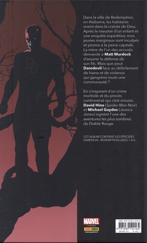 Un jeune homme est retrouvé mort, mutilé, dans une petite ville américaine Un assassin tout désigné est arrêté, fan de heavy-metal et adorateur de Satan, mais une personne croit à son innocence : son avocat Matt Murdock. Daredevil va mener l'enquête pour déterminer la vérité. Cette mini-série datant de 2005 est atypique pour l'Homme Sans Peur, puisqu'elle le plonge dans l'Amérique profonde. Illustrée par Michael Gaydos (Alias), c'est une saga complète qui méritait bien de rejoindre la collection MARVEL MUST-HAVE à l'occasion des soixante ans du personnage.