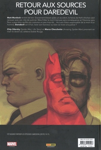 Matt Murdock a échappé de justesse à la mort. Il sort tout juste de l'hôpital, prêt à reprendre son rôle de protecteur de Hell's Kitchen. Enfin, c'est ce qu'il croit mais à présumer de ses forces, Daredevil pourrait bien commettre la plus grosse erreur de sa carrière... Chip Zdarsky (Howard le Canard) et Marco Checchetto (Obi-Wan & Anakin) signent les débuts d'une prestation exceptionnelle sur l'Homme sans peur. Nous poursuivons notre réédition au grand format des meilleurs runs de Daredevil. Et après les passages mythiques de Bendis, Brubaker et Waid, nous avons l'immense plaisir d'accueillir le très célébré run de Chip Zdarsky, accompagné par le brillant dessinateur Marco Checchetto. Cette réédition de l'intégralité de son run en 4 épais volumes intégrera également l'évènement Devil's Reign.