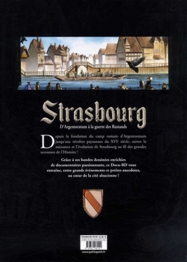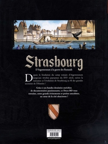 Depuis la fondation du camp romain d'Argentoratum jusqu'aux révoltes paysannes du XVIe siècle, suivez la naissance et l'évolution de Strasbourg au fil des grandes secousses de l'Histoire ! Grâce à ses bandes dessinées enrichies de documentaires passionnants, ce Docu-BD vous entraîne, entre grands événements et petites anecdotes, au coeur de la cité alsacienne !