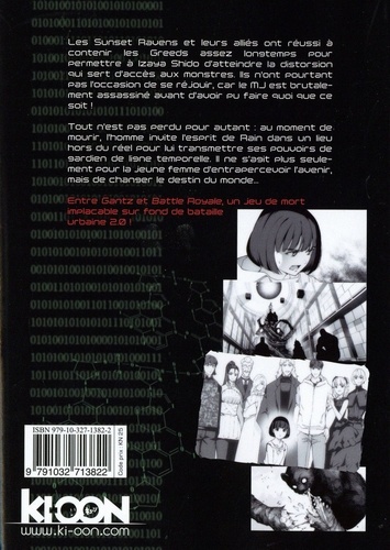 Un jeu de mort implacable sur fond de bataille urbaine 2. 0 ! Les Sunset Ravens ont accepté de s'associer à l'armée et à Seigen, le gourou aveugle des disciples de Kuchinawa, pour combattre les Greeds au cours de l'opération Tokaido. Ils sont rejoints par un allié inattendu, Izaya Shido, le maître de jeu lui-même ! Le plan est simple : mener le MJ à la distorsion spatio-temporelle qui permet aux envahisseurs de se matérialiser et neutraliser en parallèle Witch, Tower et Emulator, leurs trois généraux. Les humains seront-ils capables de vaincre ces monstres conçus pour les surpasser ? Entre Gantz et Battle Royale, un jeu de mort implacable sur fond de bataille urbaine 2. 0 !