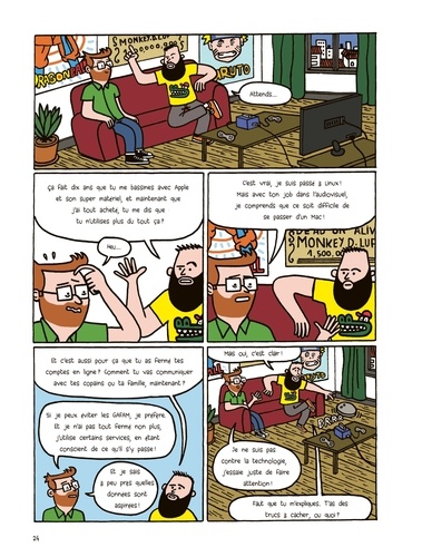 Ce nouveau scandale concernant une fuite massive de données personnelles vous exaspère ? Vous avez découvert que la dernière app que vous avez installée aspire votre vie privée et espionne vos contacts ? GAFAM, RGPD, VPN et autres acronymes compliqués manquent de vous faire perdre la tête ? Suivez le parcours d'Audric, médiateur numérique, à travers la constellation d'embûches que représentent aujourd'hui Internet et nos appareils connectés. Grâce à la mise en images humoristique d'Halfbob, Audric nous livre un éclairage sans langue de bois, mais résolument positif, de ce monde en constante évolution et apporte des conseils didactiques sur nos outils quotidiens qu'on devrait utiliser avec plus de prudence. Partez à la rencontre d'un monde informatique plus sécurisé, un espace dans lequel vous avez le choix. Et reprenez en main votre vie numérique.