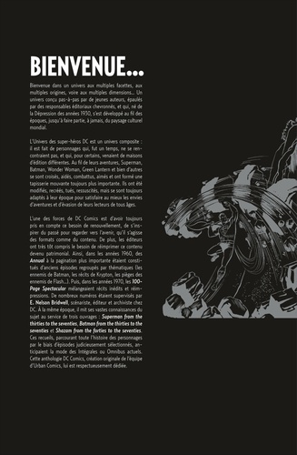 Plongez dans l'univers des super-héros DC COMICS avec ces quinze histoires réalisées par les plus grands auteurs de comics, emblématiques du Golden, du Silver et du Modern Age. Redécouvrez les origines des plus grands héros : Superman, Batman, Wonder Woman, Green Lantern ! Tremblez devant leurs plus grands ennemis : le Joker, Ra's Al Ghul, Sinestro ! Revivez les plus grands moments : de la destruction de Krypton à la naissance de la Justice League ! Plus de 75 ans d'aventures réunis dans un seul album !