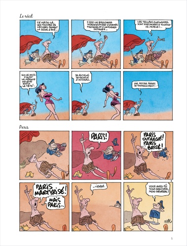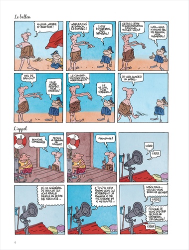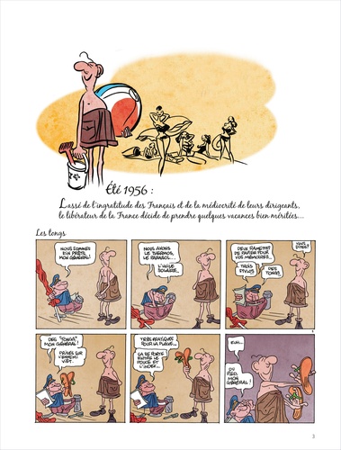 De Gaulle à la Plage est né dans les pages de Vive la Politique, ce grand homme en short découvrant les tongs et les congés payés nous a fait tellement rire qu'il ne pouvait pas nous quitter aussi vite. Très vite Jean-Yves Ferri s'est senti investi d'une impérative mission, il en allait de l'intérêt supérieur du pays, il fallait raconter l'été 56, celui où le Général, lassé de l'ingratitude de ces veaux de français, décida de se consacrer à l'édification de châteaux de sable, au bonheur des pique-nique et aux joies du volley ball.