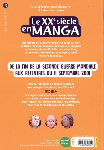 Le XXe siècle en manga raconte les bouleversements dans le monde de 1947 à nos jours. Une histoire indispensable, documentée et facile d'accès, pour mieux comprendre le monde dans lequel nous vivons. Cinq chapitres pour voyager à travers le monde et l'histoire : 1 Gandhi et l'indépendance de l'Inde 2 La guerre froide d'est en ouest 3 La course à l'espace et la lutte contre la ségrégation 4 Gorbatchev et la fin de la guerre froide 5 Des attentats de 2001 au monde d'aujourd'hui