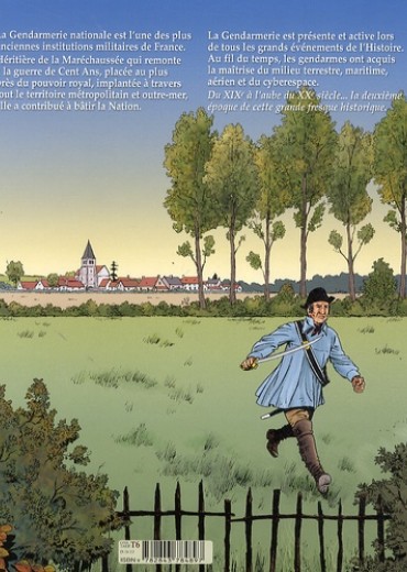 La Gendarmerie nationale est l'une des plus anciennes institutions militaires de France. Héritière de la Maréchaussée qui remonte à la Guerre de Cent Ans, placée au plus près du pouvoir royal, implantée à travers tout le territoire métropolitain et outre-mer, elle a contribué à bâtir la Nation. Au cours du XIXe siècle, la Gendarmerie s'illustre dans de nombreuses batailles, inscrites à son drapeau. Elle est présente et active lors de tous les grands évènements de l'Histoire. Devant remplir des missions militaires mais aussi civiles, au service des gouvernements successifs, subissant des «épurations» au gré des nombreux changements politiques, la Gendarmerie se retrouve cependant au plus proche des populations. Beaucoup de ses morts ont été tués au cours d'embuscades, d'attentats, de missions de protection des populations. Le Gendarme, souvent craint car représentant la Loi, devient pourtant une vraie figure populaire dans la France de la Belle Époque et des colonies. Comme celle de l'instituteur, sa présence donne force à l'État. La suite de cette superbe fresque historique et militaire (prévue en 3 tomes), dessinée par Guillaume Berteloot et scénarisée par deux spécialistes de l'Histoire de la Gendarmerie.
