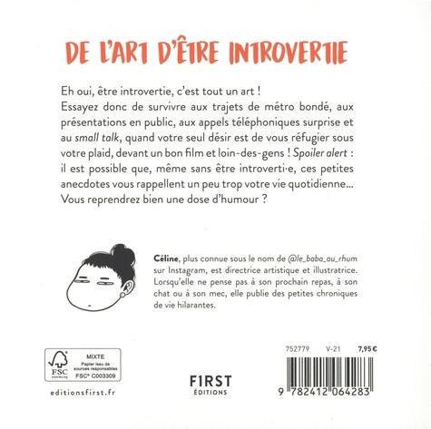 Eh oui, être introvertie, c'est tout un art ! Essayez donc de survivre aux trajets de métro bondé, aux présentations en public, aux appels téléphoniques surprise et au small tolk, quand votre seul désir est de vous réfugier sous votre plaid, devant un bon film et loin-des-gens ! Spoiler alert : il est possible que, même sans être introvertie, ces petites anecdotes vous rappellent un peu trop votre vie quotidienne... Vous reprendrez bien une dose d'humour ? Céline, plus connue sous le nom de @Ie_baba_au_rhum sur Instagram, est directrice artistique et illustratrice. Lorsqu'elle ne pense pas à son prochain repas, à son chat ou à son mec, elle publie des petites chroniques de vie hilarantes.