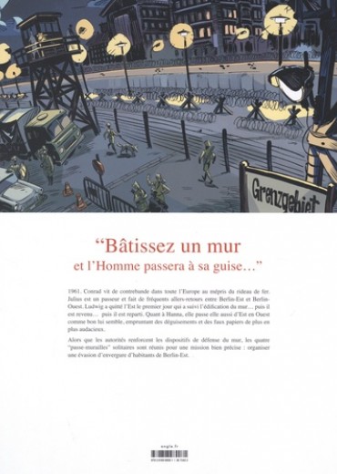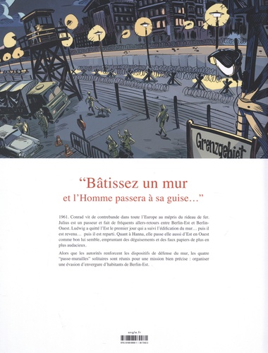 Bâtissez un mur et l'Homme passera à sa guise... 1961. Conrad vit de contrebande dans toute l'Europe au mépris du rideau de fer. Julius est un passeur et fait de fréquents allers-retours entre Berlin-Est et BerlinOuest. Ludwig a quitté l'Est le premier jour qui a suivi l'édification du mur... puis il est revenu... puis il est reparti. Quant à Hanna, elle passe elle aussi d'Est en Ouest comme bon lui semble, empruntant des déguisements et des faux papiers de plus en plus audacieux. Alors que les autorités renforcent les dispositifs de défense du mur, les quatre passe-murailles solitaires sont réunis pour une mission bien précise : organiser une évasion d'envergure d'habitants de Berlin-Est.