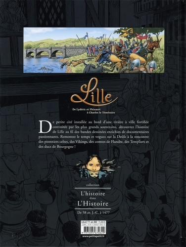 De petite cité installée au bord d'une rivière à ville fortifiée convoitée par les plus grands souverains, découvrez l'histoire de Lille au fil des bandes dessinées enrichies de documentaires passionnants. Remontez le temps et voguez sur la Deûle à la rencontre des pionniers celtes, des Vikings, des comtes de Flandre, des Templiers et des ducs de Bourgogne !