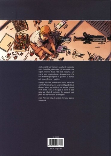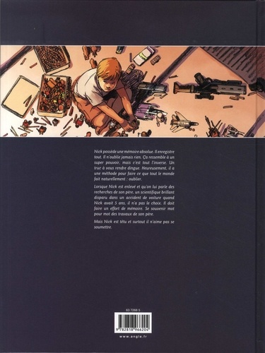Nick possède une mémoire absolue. Il enregistre tout. Il n'oublie jamais rien. Ca ressemble à un super pouvoir, mais c'est tout l'inverse. Un truc à vous rendre dingue. Heureusement, il a une méthode pour faire ce que tout le monde fait naturellement : oublier. Lorsque Nick est enlevé et qu'on lui parle des recherches de son père, un scientifique brillant disparu dans un accident de voiture quand Nick avait 5 ans, il n'a pas le choix. Il doit faire un effort de mémoire. Se souvenir mot pour mot des travaux de son père. Mais Nick est têtu et surtout il n'aime pas se soumettre.