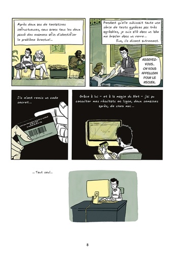 Après deux ans de tentatives infructueuses pour faire un enfant, nous avons tous deux passé des examens afin d'identifier le problème éventuel. Pendant que ma chérie subissait tout un tas de tests gynécos pas très agréables, je suis allé dans un labo me branler dans un verre... Là, ils m'ont remis un code secret. Grâce à lui - et à la magie du net - j'ai pu consulter les résultats en ligne, deux semaines après, de chez moi... Tout seul... Et j'ai lu : oligoasthénotératozoospermie ! "