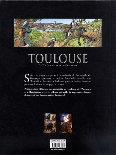 Suivez les amphores, partez à la recherche de l'or maudit des Tectosages, parcourez la capitale des Goths, tremblez sous l'Inquisition, fuyez devant le dernier grand incendie et découvrez pourquoi Toulouse est un pays de cocagne ! Plonger dans l'Histoire mouvementée de Toulouse de l'Antiquité à la Renaissance avec cet album qui mêle de captivantes bandes dessinées à des documentaires ludiques !