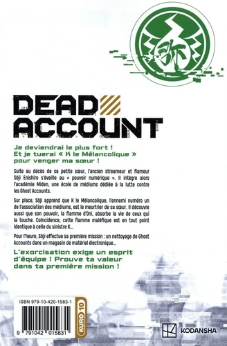 Les réseaux sociaux sont hantés, un influenceur va les exorciser ! Je deviendrai le plus fort ! Et je tuerai " K le Mélancolique " pour venger ma soeur ! Suite au décès de sa petite soeur, l'ancien streameur et flameur Sôji Enishiro s'éveille au " pouvoir numérique ". Il intègre alors l'académie Miden, une école de médiums dédiée à la lutte contre les Ghost Accounts. Sur place, Sôji apprend que K le Mélancolique, l'ennemi numéro un de l'association des médiums, est le meurtrier de sa soeur. Il découvre aussi que son pouvoir, la flamme d'Oni, absorbe la vie de ceux qui la touche. Coïncidence, cette flamme maléfique est en tout point identique à celle du sinistre K... Pour l'heure, Sôji effectue sa première mission : un nettoyage de Ghosts Accounts dans un magasin de matériel électronique... L'exorcisation exige un esprit d'équipe ! Prouve ta valeur dans ta première mission !