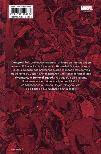 Deadpool fait une incursion dans l'univers du manga grâce à une collaboration épique entre Marvel et Shonen Jump+ ! Le plus déjanté des antihéros quitte le monde des comics et se rend au Japon afin d'intégrer une filiale officielle des Avengers, le Samurai Squad. Au pays du Soleil levant, il va s'en donner à coeur joie en multipliant les références à Demon Slayer, Dragon Ball... et à tout ce qui lui posse par la tête !