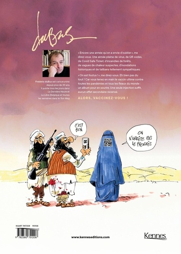 "Encore une année qu'on a envie d'oublier", me direz-vous. Une année pleine de virus, de OR codes. de Covid Safe Ticket, d'incendies de forêts, de vagues de chaleur suspectes. d'inondations historiques et de talibans tellement sympathiques. "On est foutus ! ", me direz-vous. Eh bien pas du tout ! Car vous tenez en main le vaccin ultime contre toutes les pandémies et tous les fléaux du monde : un album pour en sourire. Une seule injection suffit, aucun effet secondaire recensé. ALORS, VACCINEZ-VOUS !