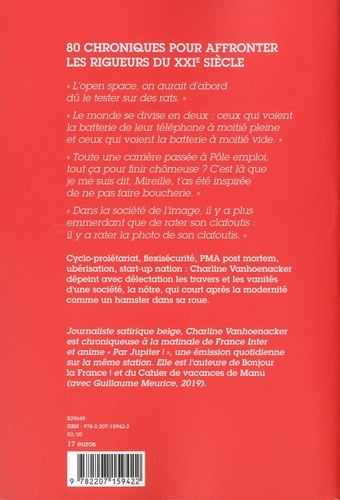 Cyclo-prolétariat, flexisécurité, PMA post mortem, ubérisation, start-up nation : Charline Vanhoenacker dépeint avec délectation les travers et les vanités d'une société, la nôtre, qui court après la modernité comme un hamster dans sa roue.