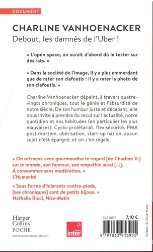 80 chroniques pour affronter les rigueurs du XXIe siècle "L'open space, on aurait d'abord dû le tester sur des rats". " Le monde se divise en deux : ceux qui voient la batterie de leur téléphone à moitié pleine et ceux qui voient la batterie à moitié vide. " " Toute une carrière passée à Pôle emploi, tout ça pour finir chômeuse ? C'est là que je me suis dit, Mireille, t'as été inspirée de ne pas faire boucherie. " " Dans la société de l'image, il y a plus emmerdant que de rater son clafoutis : il y a rater la photo de son clafoutis. " Cyclo-prolétariat, flexisécurité, PMA post mortem, ubérisation, start-up nation : Charline Vanhoenacker dépeint avec délectation les travers et les vanités d'une société, la nôtre, qui court après la modernité comme un hamster dans sa roue. A propos de l'autrice Charline Vanhoenacker, née à La Louvière, en Belgique, est journaliste, humoriste, animatrice et productrice de radio belge. Elle est notamment connue pour ses chroniques sur France Inter. " On y retrouve avec gourmandise son regard sur le monde, son humour, son empathie aussi [... ]. A consommer sans modération. " L'Humanité