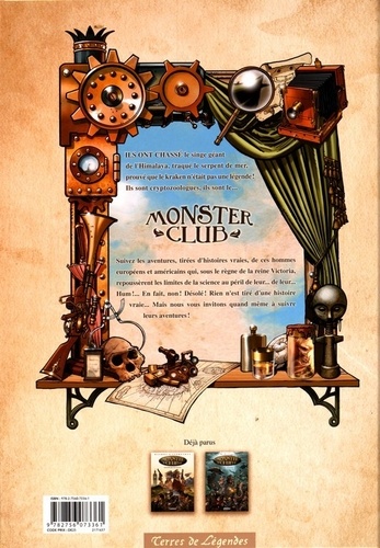 Ils ont chassé le singe géant de l'Himalaya, traqué le serpent de mer, prouvé que le kraken n'était pas une légende ! Ils sont cryptozoologues, ils sont le... MONSTER CLUB. Suivez les aventures, tirées d'histoires vraies, de ces hommes européens et américains qui, sous le règne de la reine Victoria, repoussèrent les limites de la science au péril de leur... de leur... Hum !... En fait, non ! Désolé ! Rien n'est tiré d'une histoire vraie... Mais nous vous invitons quand même à suivre leurs aventures !
