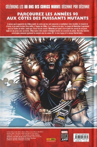 Parcourez les années 90 aux côtés des puissants mutants. A mesure que la popularité des X-Men grandit, les séries qui leur sont consacrées se multiplient. Entre Excalibur, le relaunch de X-Factor et pas moins de deux titres dédiés à l'équipe des X-Men, il y a l'embarras du choix. Les jeunes de Génération X apprennent aussi les ficelles du métier, tandis que X-Force bat des records. Wolverine part quant à lui en quête des secrets de son passé, Cable est aux prises avec son destin, X-Man explore notre monde et Deadpool entame son ascension du podium. Mais deux funestes catastrophes menacent également les mutants dans les années 90 : le virus Legacy et le sauvage Dent-de Sabre... Ce volume contient Excalibur (1988) 42, Wolverine (1988) 48, X-Factor (1986) 87, X-Men (1991) 27, Generation X (1994) 4, X-Man (1995) 5, Uncanny X-Men (1981) 328, X-Force (1991) 55, Deadpool (1997) 2 et Cable (1993) 64.