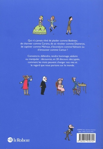 La talentueuse Soledad Bravi nous explique en BD, avec humour et efficacité, pourquoi ces 20 discours ont marqué l'histoire et en quoi ils résonnent encore aujourd'hui. Qui n'a jamais rêvé de plaider comme Badinter, de charmer comme Cyrano, de se révolter comme Daenerys, de captiver comme Malraux, d'éconduire comme Valmont ou d'émouvoir comme Camus ? Convaincre, défendre, rendre hommage, séduire ou manipuler : découvrez, en 20 discours décryptés, comment les mots peuvent changer nos vies et le regard que nous portons sur le monde. Adapté aux programmes du lycée pour aborder toutes les problématiques liées à l'oral (Grand oral, français, humanités, littérature et philosophie...) LA PRESSE EN PARLE " Un roman graphique, un roman plein de très jolis mots, plein de mots percutants, plein de mots qui restent " Thomas Sotto (Télématin) " C'est la preuve graphique, juridique, historique, que les mots changent la société " " L'appareil critique est très bien fait : vous avez le contexte, le discours et ce qu'il a changé " " C'est vraiment un livre qu'il faut laisser trainer chez soi sur sa table basse et regarder avec les ados... [... ] c'est très très bien fait ! " Olivia de Lamberterie (Télématin) " A la fois intelligent et accessible ". Elise Comte (Télé Loisirs - " Les 7 incontournables du moment ") " Un livre indispensable, bourré d'humour et diablement efficace auprès des plus jeunes ". Samuel Loutafy (Télé Z) " chaque décryptage est passionnant et démontre que les mots peuvent changer les regards et les vies ". Anne-Flore Hervé (Ouest France) SOMMAIRE 1. Convaincre - Discours de Simone Veil pour le droit à l'avortement - Discours de Robert Badinter en faveur de l'abolition de la peine de mort - Discours de Carl Sagan, " Un point bleu pâle " - Discours de Dominique de Villepin contre l'intervention en Irak 2. Séduire - Déclaration d'amour de Perdican à Camille, d'Alfred de Musset - Chant d'amour de Carmen " Habanera ", de Georges Bizet - Déclaration d'amour de Cyrano à Roxane, d'Edmond Rostand - Déclaration d'amour de Louis Aragon à Elsa 3. Dénoncer - Discours de Victor Hugo sur la misère - Discours de Dolores Ibárruri contre le fascisme - Discours de Martin Luther King contre le racisme - Discours d'Emma Gonzáles contre les armes à feu 4. Manipuler - Rupture de Valmont avec Madame de Tourvel, de Pierre Choderlos de Laclos - Pitch publicitaire de Don Draper " Le Carrousel " - Discours de Daenerys Targaryen " Briseuse de chaînes " 5. Accuser / Défendre - Plaidoirie de Maître Vincent de Moro-Giaferri au procès d'Henri Désiré Landru - Réquisitoire du procureur général Gideon Hausner au procès d'Adolf Eichmann 6. Remercier, Rendre hommage - Hommage d'Albert Camus à Monsieur Germain son instituteur - Hommage d'André Malraux à Jean Moulin - Discours de Marguerite Yourcenar : réception à l'Académie française 7. Formules et slogans inspirants