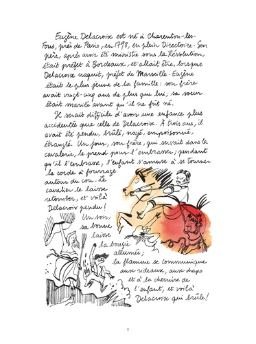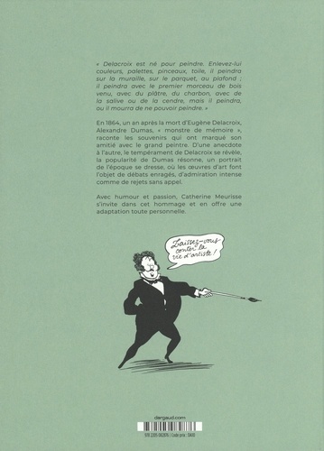 En 1864, un an après la mort d'Eugène Delacroix, Alexandre Dumas, "monstre de mémoire", raconte les souvenirs qui ont marqué son amitié avec le grand peintre. D'une anecdote à l'autre, le tempérament de Delacroix se révèle, la popularité de Dumas résonne, un portrait de l'époque se dresse, où les oeuvres d'art font l'objet de débats enragés, d'admiration intense comme de rejets sans appel. Avec humour et passion, Catherine Meurisse s'invite dans cet hommage et en offre une adaptation toute personnelle.