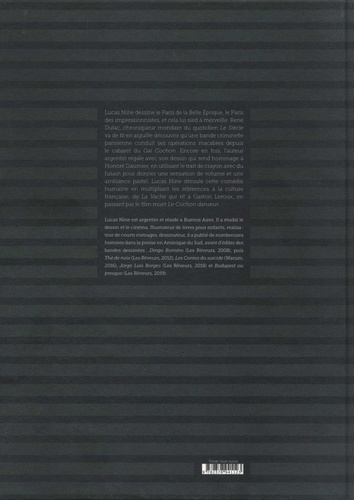 Lucas Nine dessine le Paris de la Belle Epoque, le Paris des impressionnistes, et cela lui sied à merveille. René Dulac, chroniqueur mondain du quotidien Le Siècle va de fil en aiguille découvrir qu'une bande criminelle parisienne conduit ses opérations macabres depuis le cabaret du Gai Cochon. Encore en fois, l'auteur argentin régale avec son dessin qui rend hommage à Honoré Daumier, en utilisant le trait de crayon avec du fusain pour donner une sensation de volume et une ambiance pastel. Lucas Nine déroule cette comédie humaine en multipliant les références à la culture française, de La Vache put rit á Gaston Leroux, en passant par le film muet Le Cochon danseur.