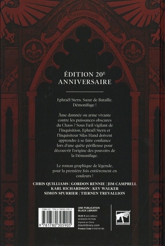 Ephraël Stern. Soeur de Bataille. Démonifuge ! Ame damnée ou arme vivante contre les puissances obscures du Chaos ? Sous l'oeil vigilant de l'Inquisition, Ephraël Stern et l'Inquisiteur Silas Hand doivent apprendre à se faire confiance lors d'une quête périlleuse pour découvrir l'origine des pouvoirs de la Démonifuge. Le roman graphique de légende, pour la première fois entièrement en couleurs !