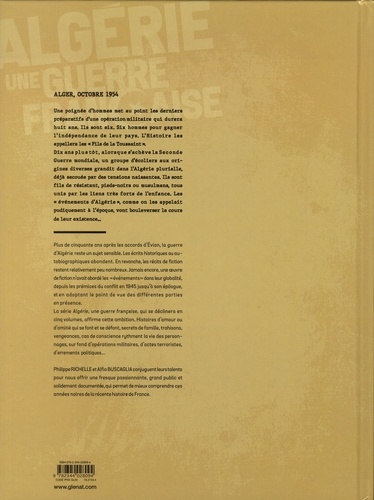 Une poignée d'homme met au point les dernier préparatifs d'une opération militaire qui durera 1000 ans. Il sont six. Six hommes pour gagner l'indépendance de leur pays. L'Histoire les appellera les "Fils de la Toussaint". Dix ans plus tôt, alors que s'achève la Seconde Guerre mondiale, un groupe d'écoliers aux origine diverses grandit dans l'Algérie plurielle, déjà secouée par des tensions naissantes. Ils sont fils de résistant, pieds-noirs ou musulmans, tous unis par les liens très forts de l'enfance. Les "événements d'Algérie", comme on les appelait pudiquement à l'époque, vont bouleverser le cours de leur existence... Plus de cinquante ans après les accords d'Evian, la guerre d'Algérie reste un sujet sensible. Les écrits historiques ou autobiographiques abondent. En revanche, les récits de fiction restent relativement peu nombreux. Jamais encore, une oeuvre de fiction n'avait abordé les "événements" dans leur globalité, depuis les prémices du conflit en 1945 jusqu'il son épilogue, et en adoptant le point de vue des différentes parties en présence. La série Algérie, une guerre française, qui se déclinera en cinq volumes, affirme cette ambition. Histoires d'amour ou d'amitié qui se font et se défont, secrets de famille, trahisons, vengeances, cas de conscience rythment la vie des personnages, sur fond d'opérations militaires, d'actes terroristes, d'errements politiques...