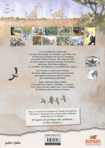 C'est au milieu des années 80, au cours d'un voyage au Cachemire, que Pierre Gay (le directeur du Bioparc de Doué-la-Fontaine) a rencontré Helen Freeman. Elle venait de créer le Snow Leopard Trust pour protéger les derniers spécimens d'un animal mythique, le "fantôme" de l'Himalaya : la panthère des neiges ! Il y a 40 ans et avant tout le monde, elle avait compris que la clé de la préservation des espèces menacées était le soutien aux communautés humaines. Après avoir parcouru le monde à la recherche d'autres "fantômes" à sauver, Pierre Gay a lui aussi appris que c'est en aidant les Hommes qu'on sauvera la nature.