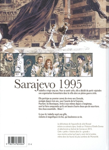 Isabelle a vingt-cinq ans. Pour se sentir utile, elle o décidé de partir rejoindre une organisation humanitaire dans la ville alors en pleine guerre civile. Elle participe ou premier convoi de vivres vers Gorazde, assiégée depuis trois ans, sous l'escorte de la Forpronu. Pourtant, les Bosniaques, livrés à eux-mêmes depuis si longtemps, vont lui faire comprendre qu'ils ont besoin d'autre chose que de nourriture. Une chose essentielle : Rêver ! Ce jour-là, Isabelle reçoit une gifle, violente et magnifique à la fois, qui bouleverse sa vie.