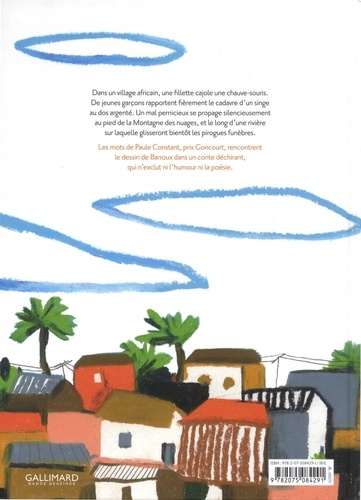 Les mots de Paule Constant, prix Goncourt, rencontrent le dessin de Barroux dans un conte déchirant, qui n'exclut ni l'humour ni la poésie. Dans un village africain, une fillette cajole une chauve-souris. De jeunes garçons rapportent fièrement le cadavre d'un singe au dos argenté. Un mal pernicieux se propage silencieusement au pied de la Montagne des nuages, et le long d'une rivière sur laquelle glisseront bientôt les pirogues funèbres.