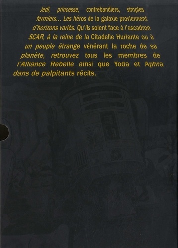 Jedi princesse, contrebandiers, simples fermiers... Les héros de la galaxie proviennent d'horizons variés. Qu'ils soient face à l'escadron SCAR, à la reine de la Citadelle Hurlante ou à un peuple étrange vénérant la roche de sa planète, retrouvez tous les membres de l'Alliance Rebelle ainsi que Yoda et Aphra dans de palpitants récits.